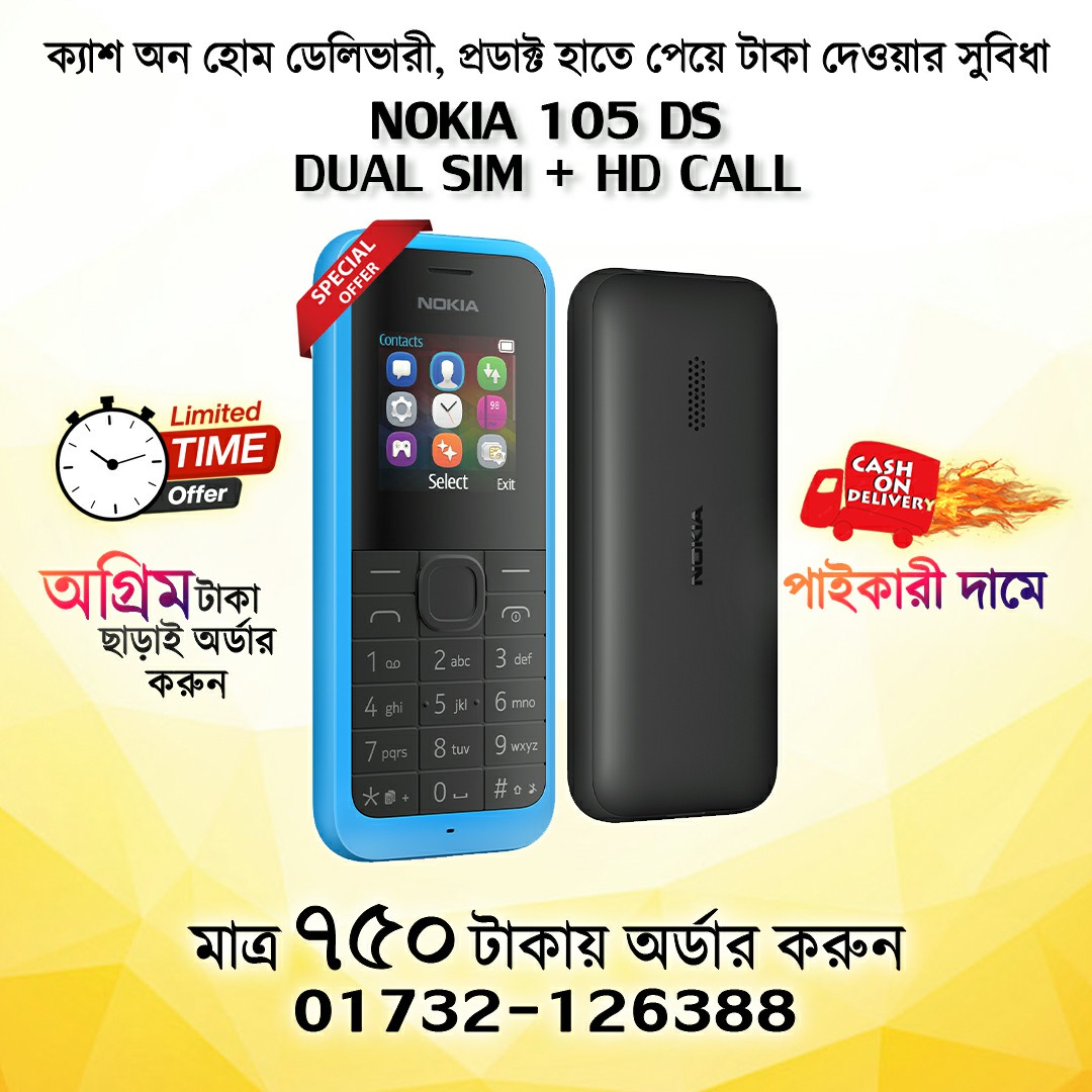 - Nokia 105 ২টি সিম কার্ড সাপোর্টেড।