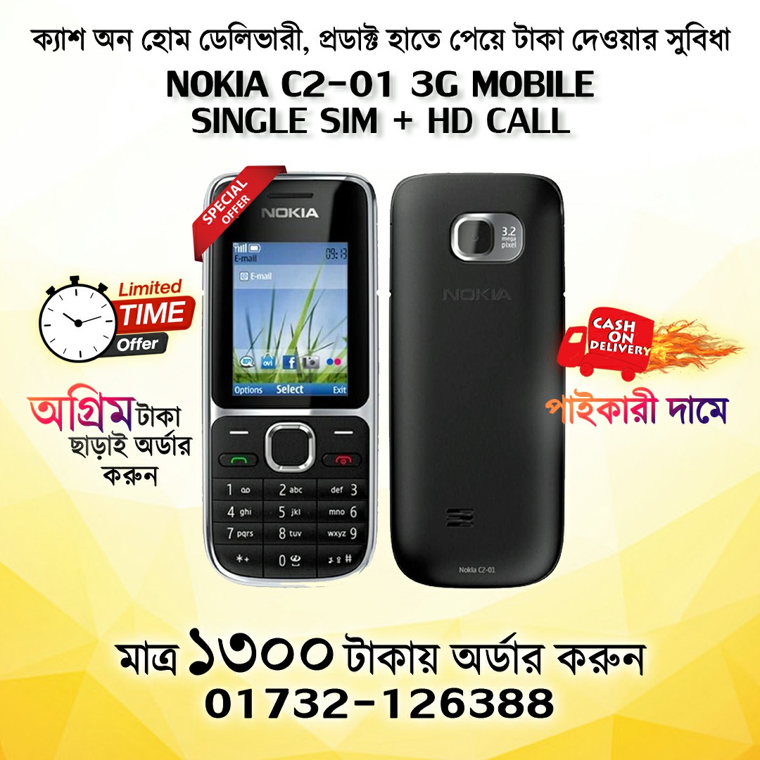 নোকিয়া সি২-০১, এই মোবাইল ৩জি সাপোর্টেড। এটি দেখতে ছোট এবং নরমাল বাটন ফোন এর মতো হলেও এর রয়েছে অনেক বেশি পাওয়ার। এতে বাউন্স বল গেইম খেলা যায়। এতে অসাধারন চার্জ ব্যাকাপ থাকে। এক কথায় প্রতিদিন ব্যবহার এর জন্য এই মোবাইলটি পার্ফেক্ট এবং এর পাওয়ার ও প্রচুর।